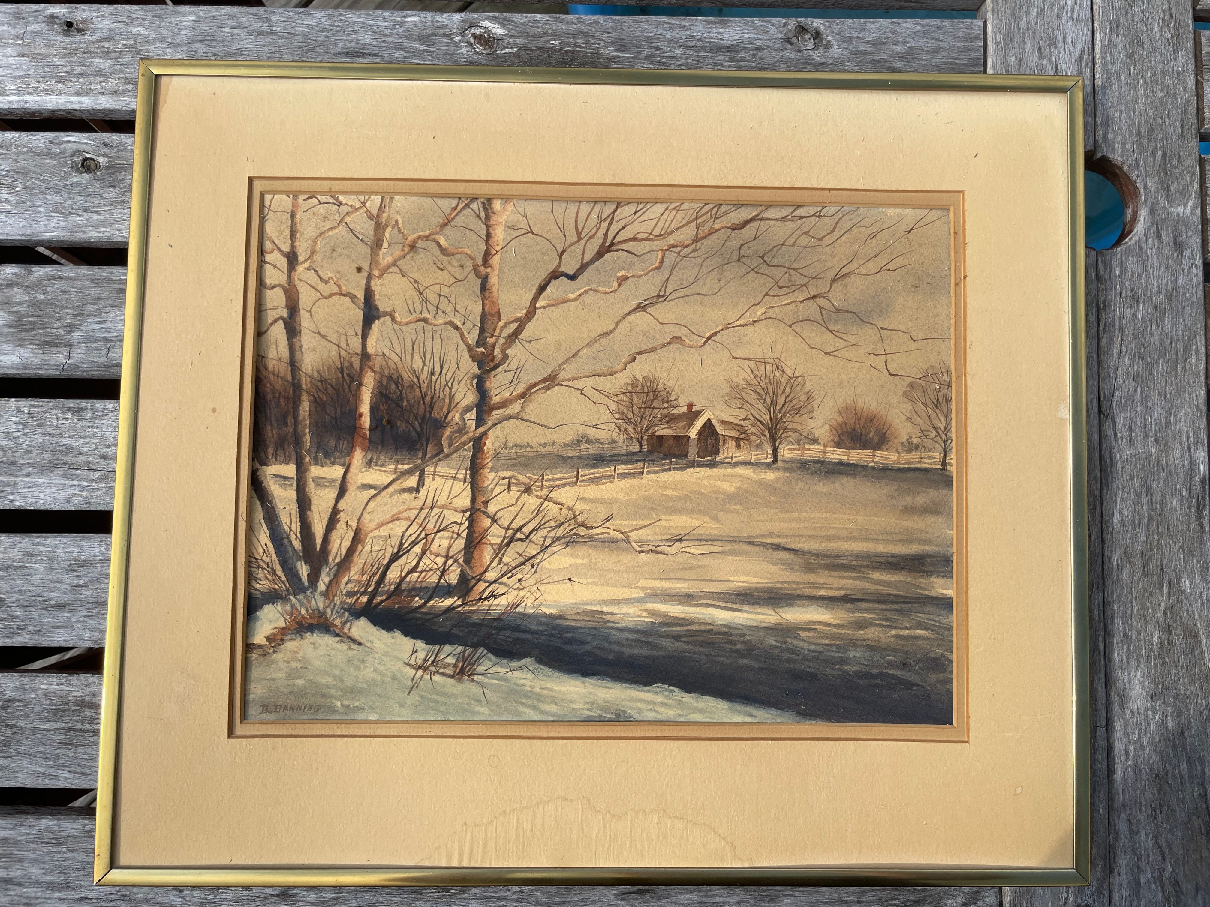 The paintings were all covered in a thick layer of oily, yellow nicotine. I ended up with several, including a pastel behind glass and an oil. But I also got a framed and matted watercolor that was not behind glass.